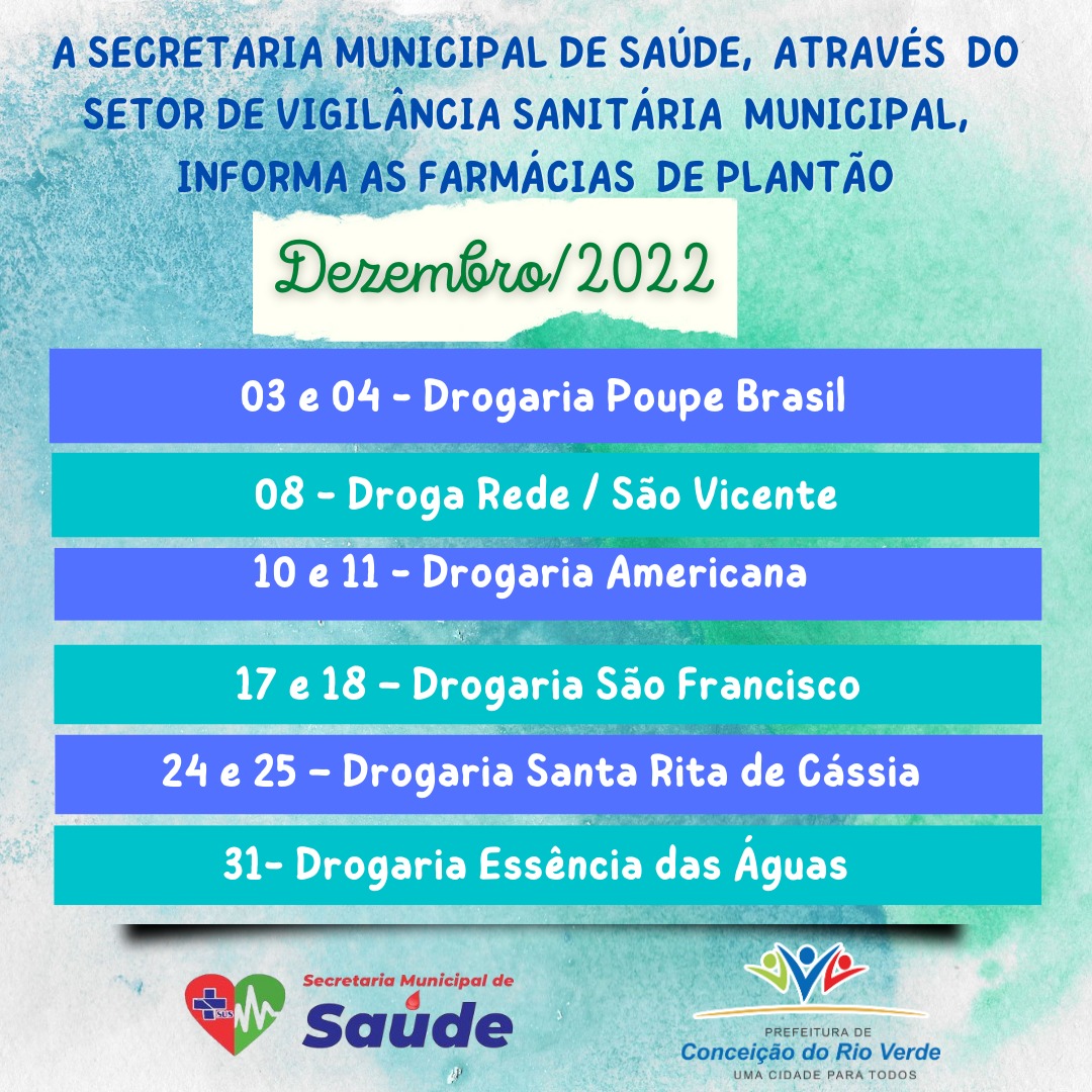FARMÁCIAS DE PLANTÃO MÊS DE DEZEMBRO 2022
