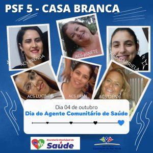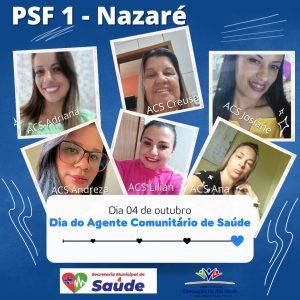A Secretaria Municipal de Saúde parabeniza na data de hoje 04/10 a todos ACS (Agentes Comunitários de Saúde) e ACE (Agentes de Combate as Endemias), pelo importante papel desempenhado na saúde do povo conceicionense.