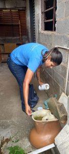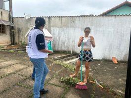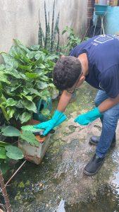 Durante a visita domiciliar, o agente realiza a vistoria no domicílio em busca de possíveis criadouros do mosquito transmissor da dengue, além da remoção mecânica dos focos, realizado também orientação e conscientização da Doença.