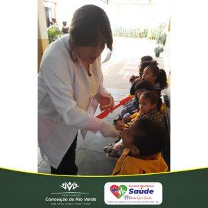 A Secretaria Municipal de Saúde em parceria com a Secretaria Municipal de Educação, deu início ao trabalho de prevenção em saúde bucal nas escolas para as nossas crianças. A profissional Ondontóloga Dr° Cláudia Ferraz está desenvolvendo um trabalho incrível, ensinando as crianças sobre a escovação, aplicando flúor e ministrando palestras educacionais, a profissional fica durante uma semana em cada escola, trabalhando nas salas de forma individual e coletiva.